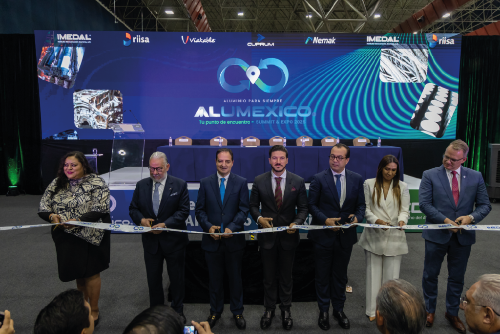 Posteriormente, se llevó a cabo la inauguración oficial, con la presencia de nuestro presidente del IMEDAL el Ing. Eugenio Clariond Rangel y acompañado de las autoridades como invitados de honor, formaron el presídium el Gobernador del Estado de Nuevo León, Samuel García; el Subsecretario de Comercio Exterior, Luis Rosendo Gutiérrez; la Secretaria de Economía del Estado de Nuevo León, Betsabé Rocha; el presidente de la CONCAMIN, Alejandro Malagón; el CEO de The Aluminum Association, Chuck Johnson y la Directora Ejecutiva del IMEDAL, Artemisa Alba.